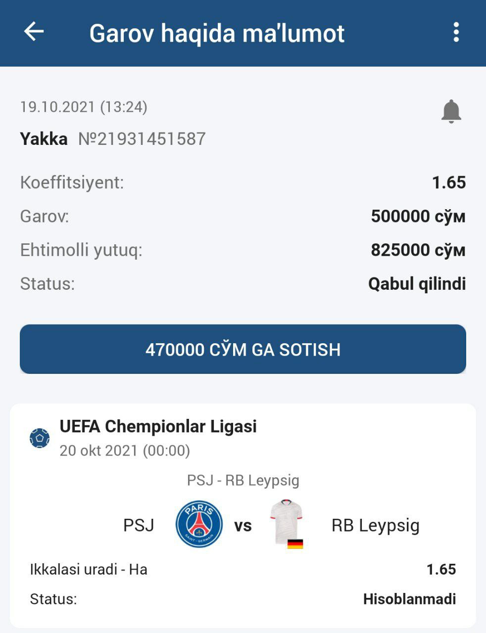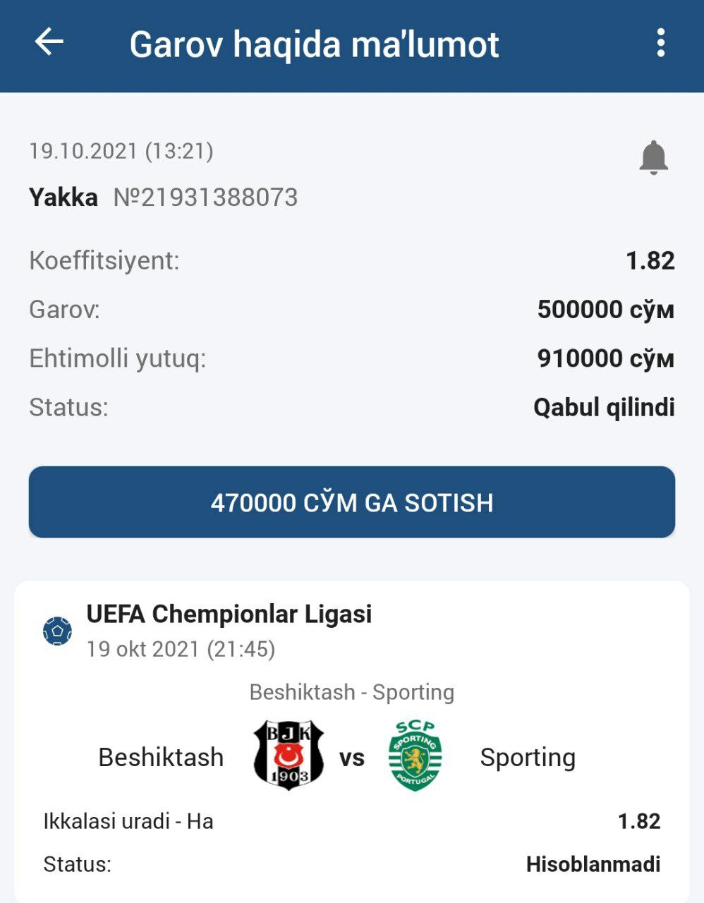 Bizning Promo kod orqali hohlagan bukmekerdan boshqattan roโyxatdan oโting va menga isbot tariqasida hisobingizni skrinshot qilib yuboring