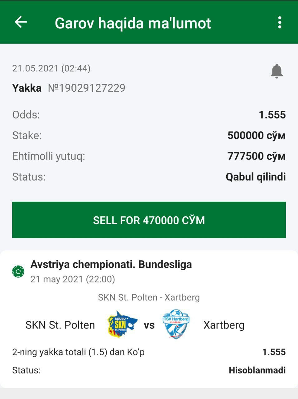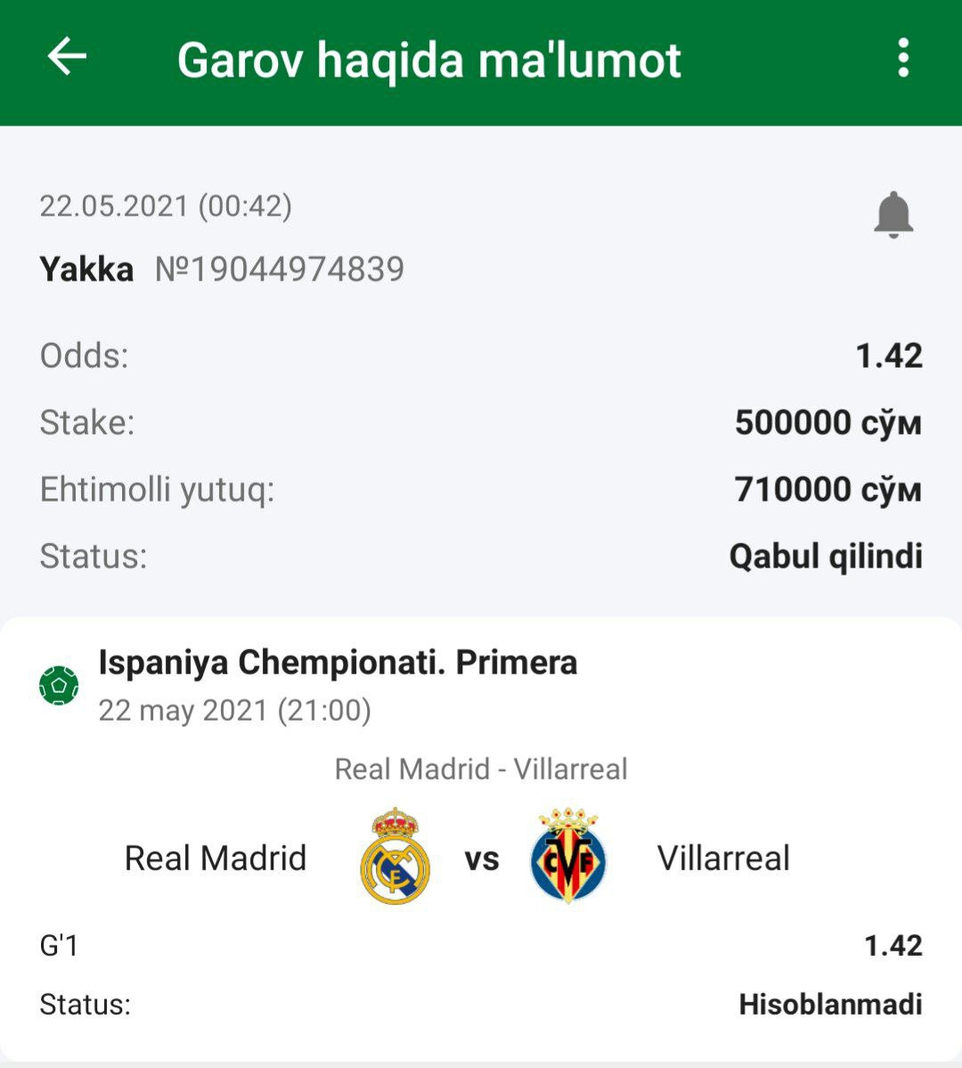 ๐ฐStavka: 1-jamoa taymlardan birida yutadi - Ha