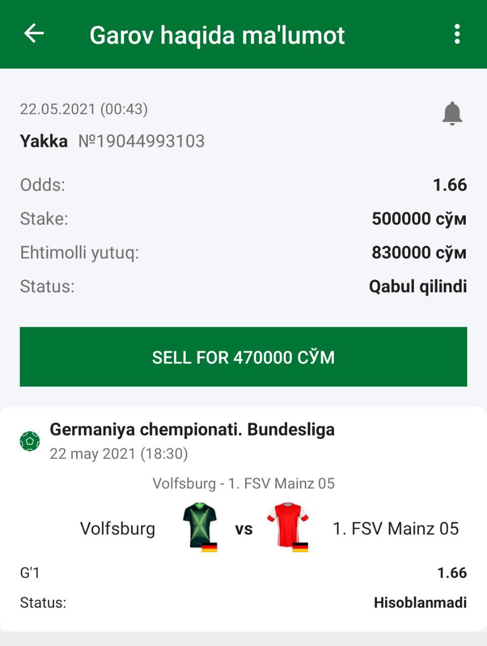 ๐ฐStavka: Gโalaba Volfsburg
