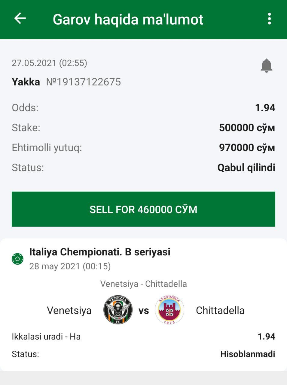 ๐ฐStavka: 2-jamoa taymlardan birida yutadi - Ha