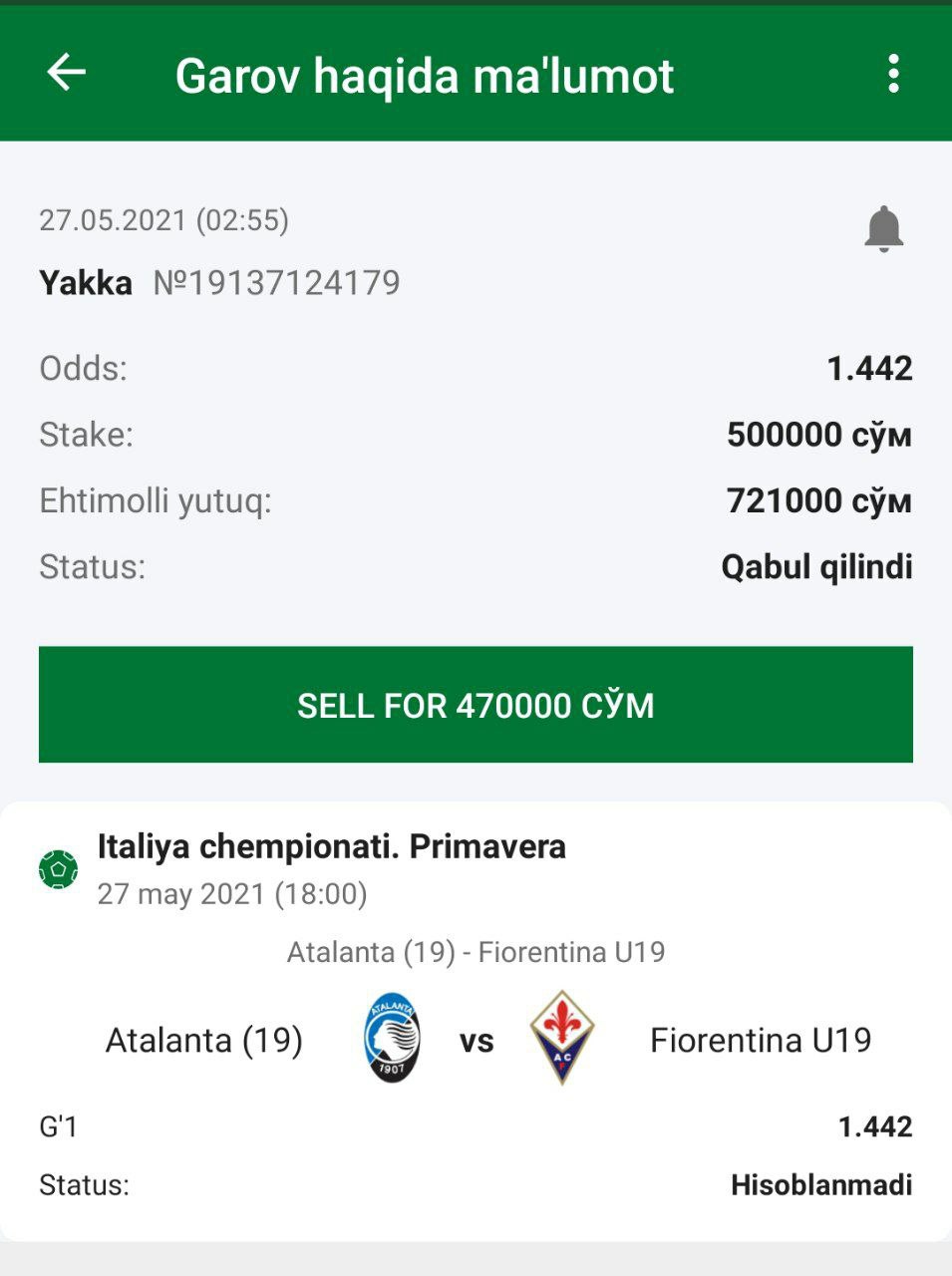 ๐ฐStavka: Gโalaba Atalanta (19)