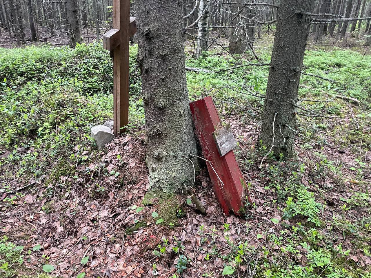 Начну с предыстории, которую накануне мне рассказали жители: после Великой Отечественной войны тут действовал "Дом инвалидов войны". Израненные и покалеченные участники боевых действий зачастую находили здесь спасение. В 1948 году Дом инвалидов был перемещён на остров Валаам. Постройки социального учреждения отдали пионерам, а в 90-х - горожанам под дачи. Но тогда же, в 1948 году, "не у дел" оказалось заброшенным кладбище, где нашли упокоение ветераны войны, умершие в Доме инвалидов. За десятилетия запустения, кладбище превратилось в свалку, а многие могилы, со слов жителей, оказались разорены.