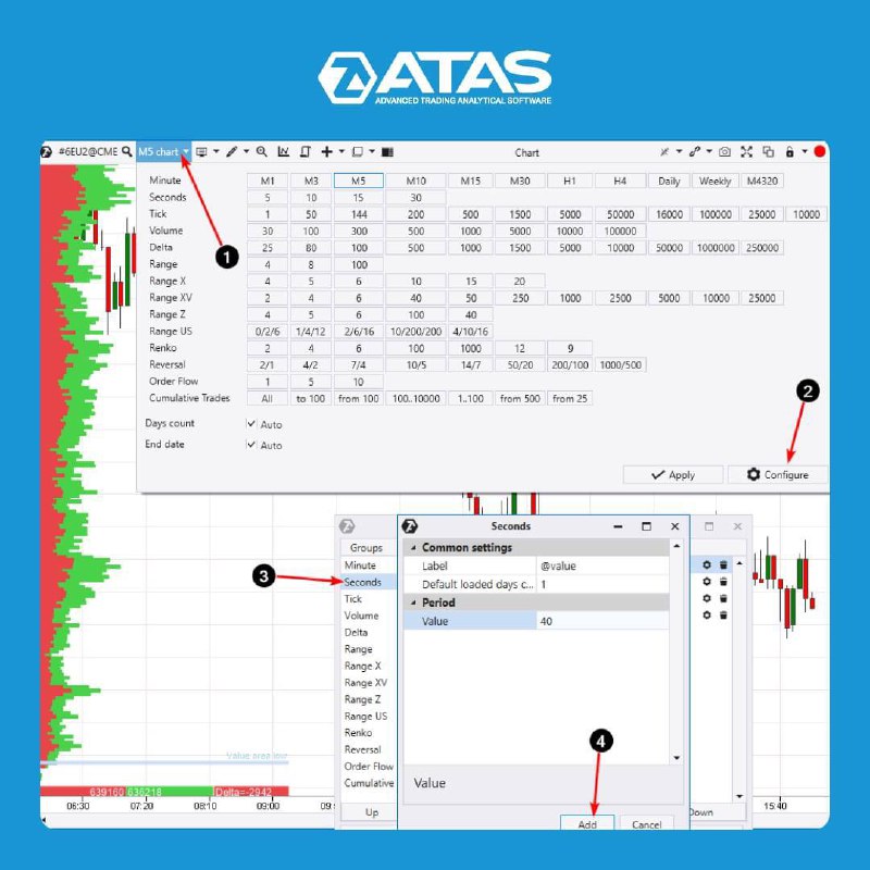 The ATAS platform offers unlimited freedom to choose time frames! In addition to the extended set with the most requested features, you have the ability to create custom time frames to meet your needs.