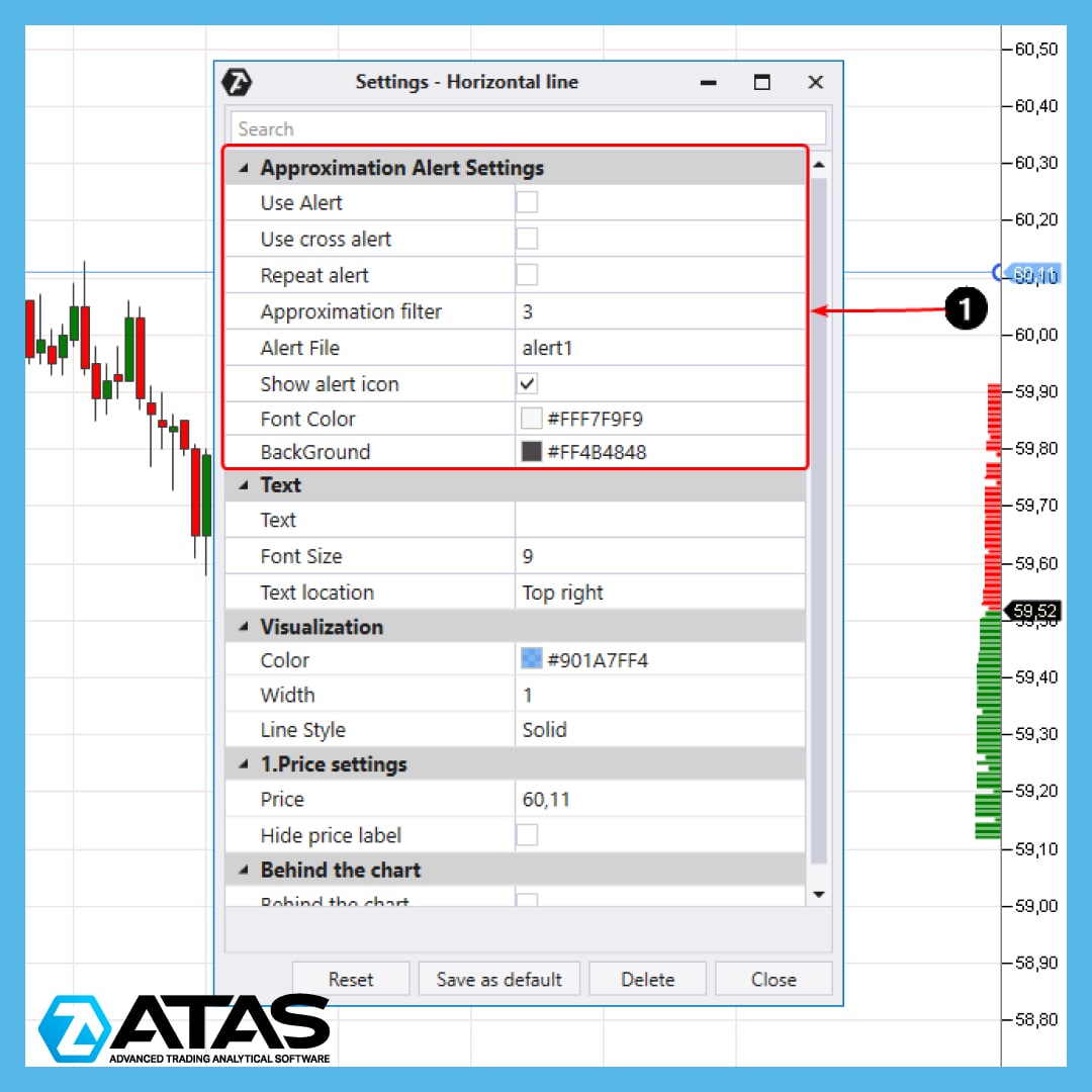 You can find more information about how to work with alerts in the ATAS platform in this article: https://bit.ly/3oQpCkN