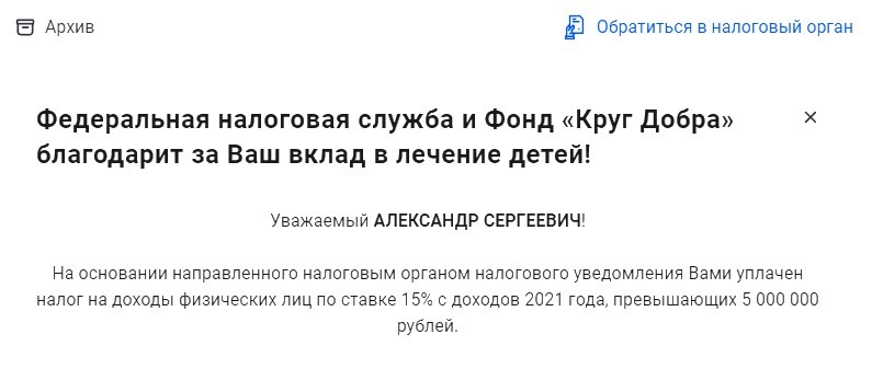 В конце года такие налогоплательщики получают благодарственные письма от ФНС. Очень приятно чувствовать себя причастным к чему то светлому и доброму. (см. фото)