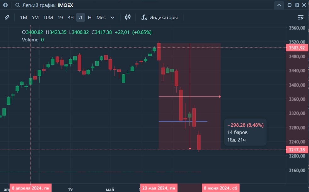 РЫНОК НЕПУГАННЫХ ИНВЕСТОРОВ. 📉 Две недели назад писал про Sell in may and go away, закрыл терминал и улетел в отпуск. Удивительно, но поговорка из года в год работает. Если рынок не падает, то обычно в мае ликвидность низкая и вялый боковик. В том же посте…