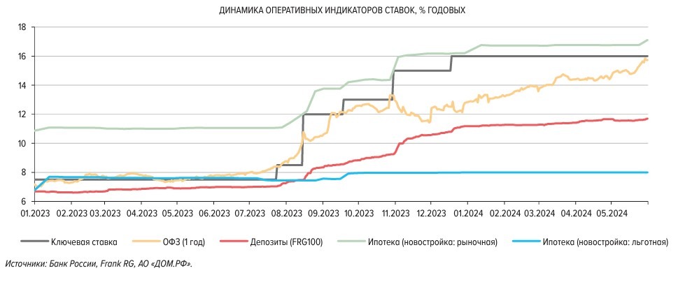 Денежно-кредитные условия ужесточились в мае, выросли номинальные и реальные ставки, выросли доходности ОФЗ и корпоративных облигаций в основном на ожиданиях участников рынка возможность дальнейшего повышения ключевой ставки и более продолжительного сохранения жесткой ДКП.