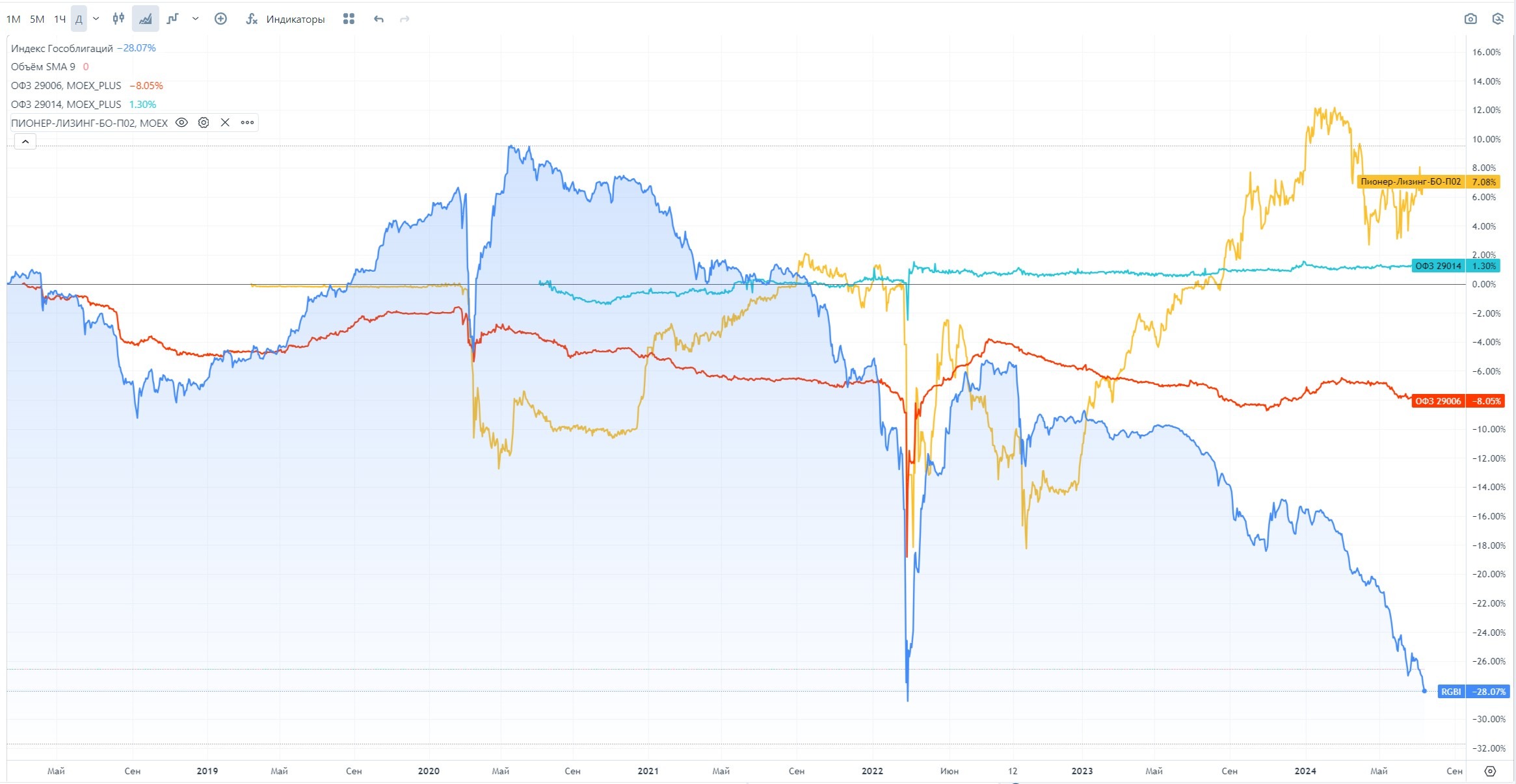 Что касается второго вопроса - то я начал в районе YTM=16% кратно увеличивать позиции в длине.