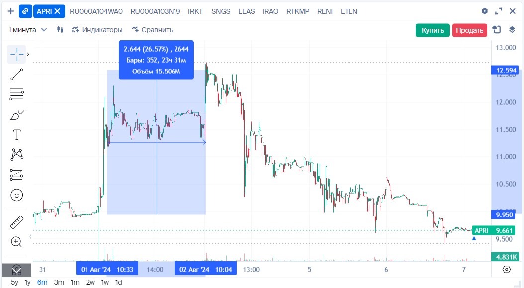 Я буду действовать по обстоятельствам. В целом профит и так около 120% по цене обмена. Во время старта торгов допуска пролив, так как с момента остановки торгов индекс Мосбиржи скорректировался на 5,7%.