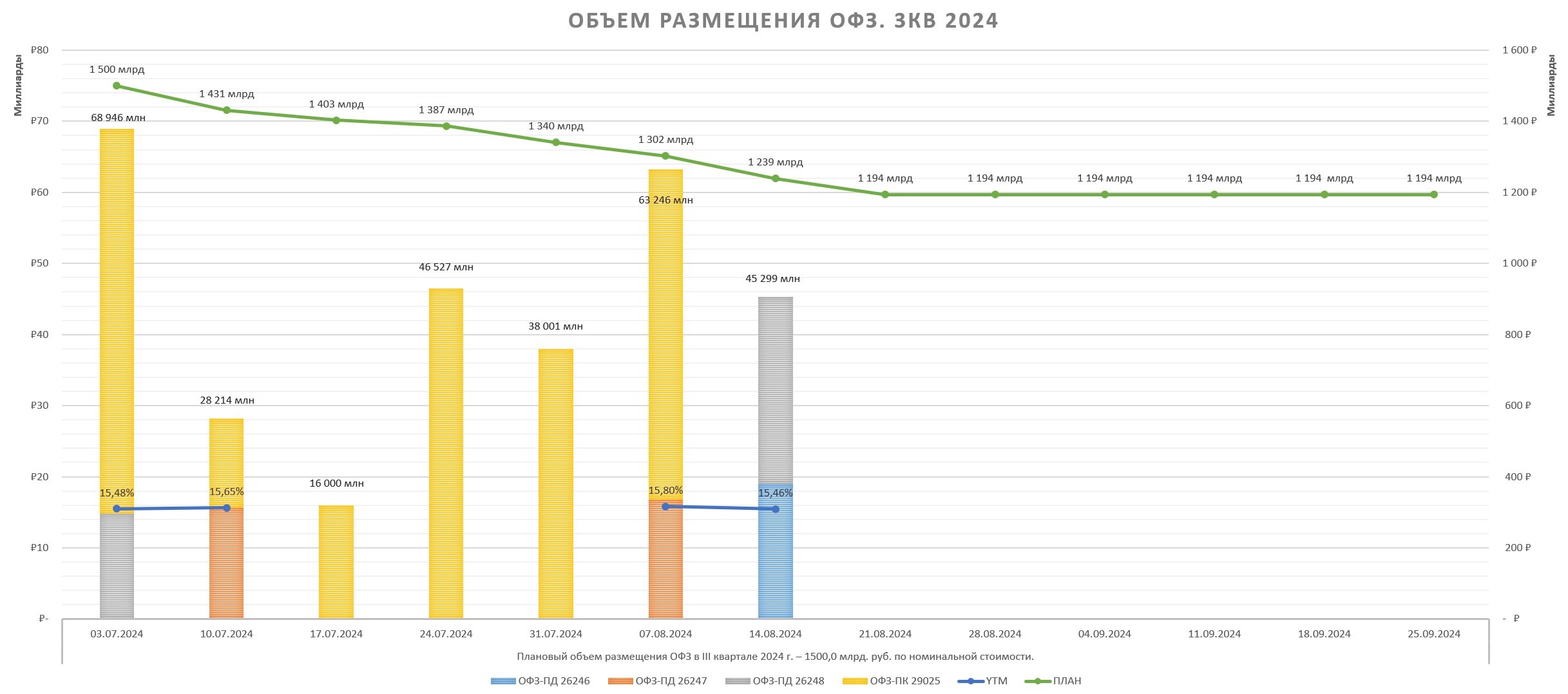 Рынок $RGBI и $MOEX широким фронтом отреагировали позитивно, 26238 вообще в стакане уже YTM 14.80%. У меня самая крупная позиция в 26243, по текущим пока не докупаю. Подожду YTM 15.8% в стакане. Думается, что Минфин еще даст зайти всем опоздунам в последний вагон (Если предложит еще 26247, доступный остаток 661 млрд руб.)