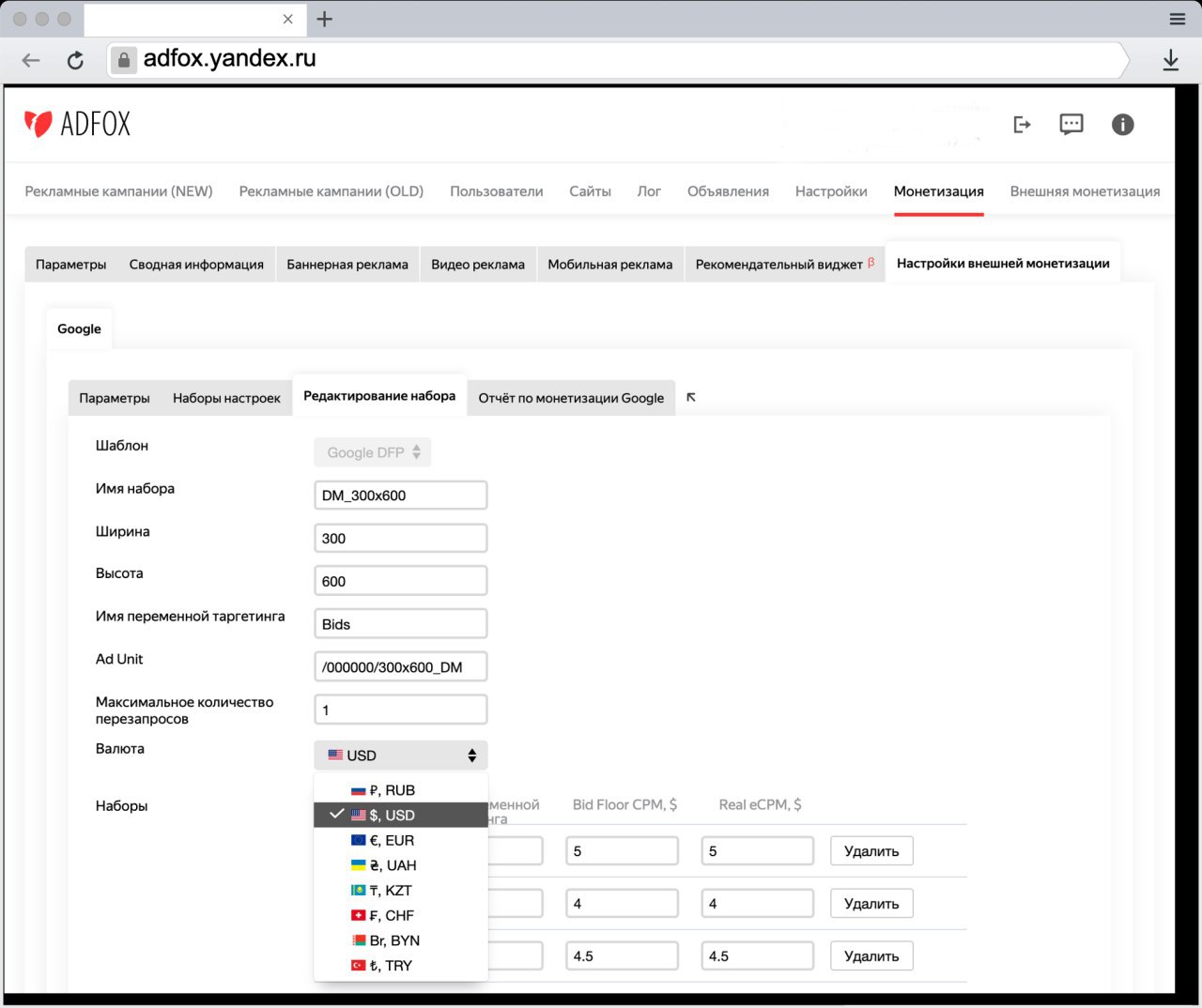 В Динамической монетизации стала доступна мультивалютность