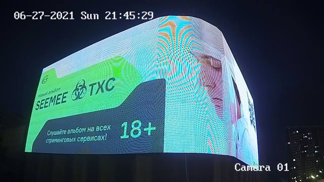 Для фото на фоне престижного медиафасада выбрали ночное время и установили минимальный интервал между показами. Креатив крутился часто и можно было снять много контента.