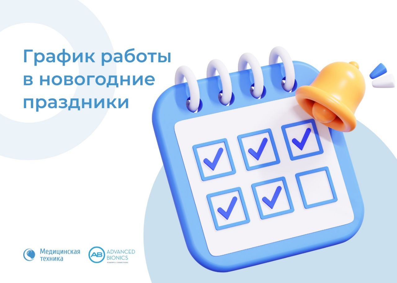 Уважаемые пользователи Advanced Bionics! Обратите внимание на график работы компании "Медицинская техника" в новогодние праздничные дни:
