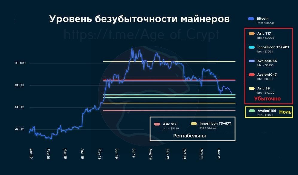 Самое время взглянуть на график цены биткоина и уровни безубыточности различных моделей асиков.