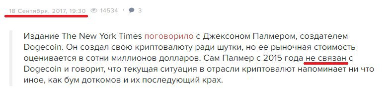 Мне очень понравилось, что сказал Сам Палмер осенью 2017 года, не многие сторонники криптовалют позволяли себе такие слова. Также в июле 2017 в интервью для Блумберг Чарльз Хоскинсон говорил про рынок «Это бомба замедленного действия».