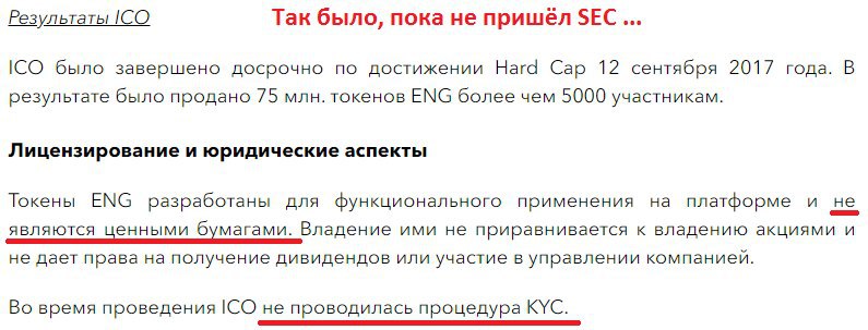 Есть ощущения, что постепенно начинается фаза повальных штрафов от SEC и придание статуса Security токенов. Я уже вижу некоторые рассуждения в чатах на эти темы, но многие заблуждаются, думают если на ICO было Utility, то всё будет хорошо. Слышал что уже проблемы у проекта TNT с регуляторами в преддверье запуска новой цепочки, ну всё как у ENG. И кстати EOS уже очистился перед SEC и выплатил штраф, ну а DOGE это просто не грозит.
