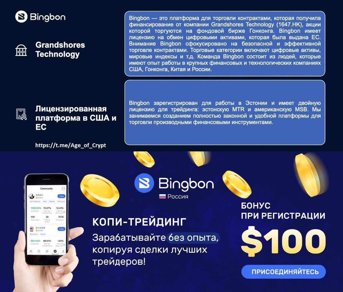 📑 Bingbon имеет лицензию на работу в США и Европейском Союзе и позволяет торговать на традиционных рынках