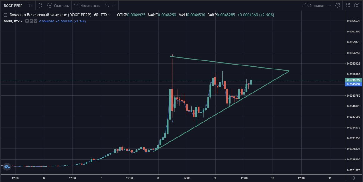 Я надеюсь подписчики моего канала понимают, что это всё просто заранее спланированное мероприятие маркетмейкера. Если вы ещё верите в случайности, перечитайте пост (Dogecoin) и обязательно посмотрите там обе ссылки. Причину происходящего я тоже описывал, у Dogecoin невзрачный, но очень сильный фундамент + это ликвидная монета с большой капитализацией. В неё маркетмейкер может переливать свои активы, например перед падением или ростом Bitcoin.