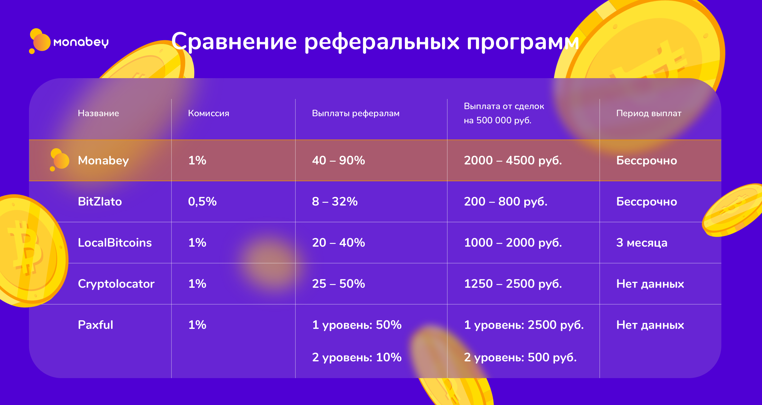 Партнерская программа Monabey хороша сама по себе: сейчас сервис предлагает от 40% до 90% от комиссий – и это самые выгодные условия на рынке P2P обмена. И учитывая новый конкурс, объемы торгов на этой перспективной платформе вскоре существенно вырастут.