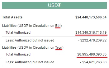 Кстати, USDT на блокчейне TRX (токен TRC-20) уже приближается по эмиссии к ERC-20 (токены на ETH) 👇