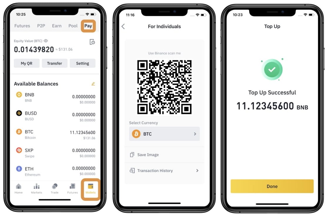 Binance Pay - это бесконтактная, безграничная и безопасная технология оплаты криптовалютой, разработанная Binance. Binance Pay (beta) позволяет вам платить и получать деньги в криптовалюте от ваших друзей и родственников по всему миру. Ведите криптовалютный образ жизни, о котором вы всегда мечтали.