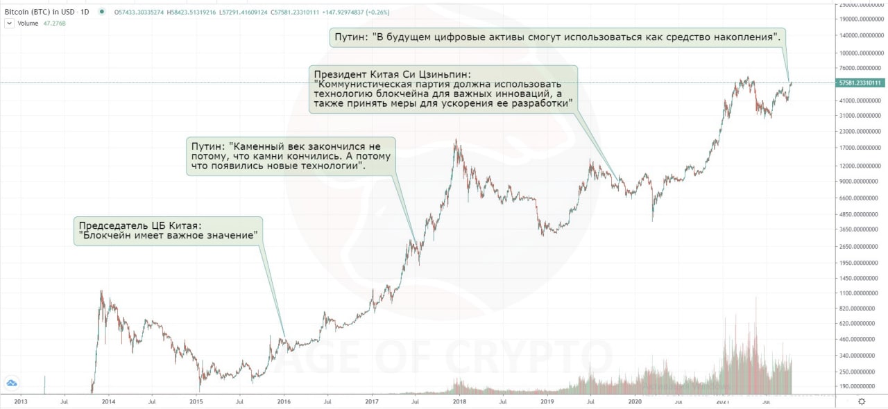 Решил нанести некоторые высказывания на график. Если так подумать, то скоро будет коррекция, и возможно даже к нижнему уровню 49000$ (график). Куда именно она придет решит рынок, я тут могу только предполагать, главное понимать что за ней последует рост.