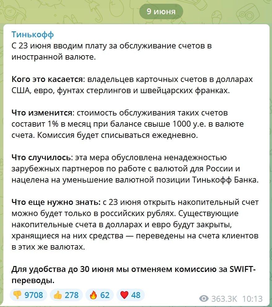 🤫 Я начал набирать шорт, скоро сделаю идею на графике. Честно говоря я даже побаиваюсь этой осени-зимы, будет сильная волатильность в рубле. У меня многие далёкие от рынков люди спрашивают куда бежать, а я кроме физического золота пока не могу посоветовать, ну или криптовалюты. Кто знает, куда дальше всё полетит, может банки РФ вообще с наличным долларом и евро откажутся работать, а держать на счетах сейчас тоже не вариант (смотрите картинки ниже 😱). Я не утверждаю, я просто опасаюсь уже давать советы покупать наличный доллар, крипта сейчас выглядит интереснее. Есть даже прогнозы, что очень много россиян начнёт осенью скупать крипту и на этом будет рост рынка.