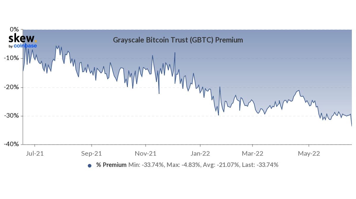 3,4% от циркуляции BTC это примерно 670'000 BTC. На сегодня GBTC дисконт упал до -33,7%, и находится на рекордно низком уровне.