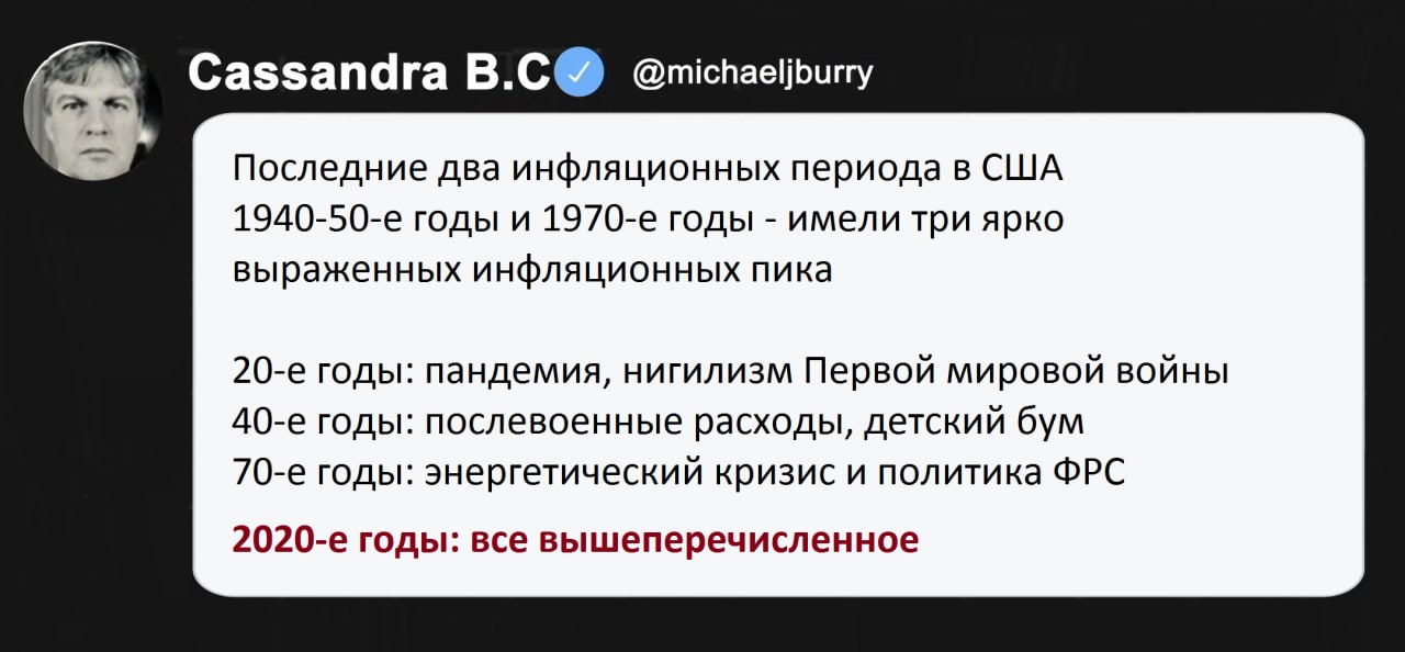 Также он сказал, что Белый Дом обманывает с отсутствием рецессии в экономике и неправильно рассчитывает уровень безработицы. Бьюрри по сути говорит, что Белый дом намеренно обманывает вас неверными статистическими данными. Белый дом утверждает, что доход с учетом инфляции, или реальный личный доход, является показателем экономической стабильности. Но задолженность по кредитным картам стремительно растет, чтобы оплатить растущие цены. Был твит, что скоро нас ждёт сжатие доходов: