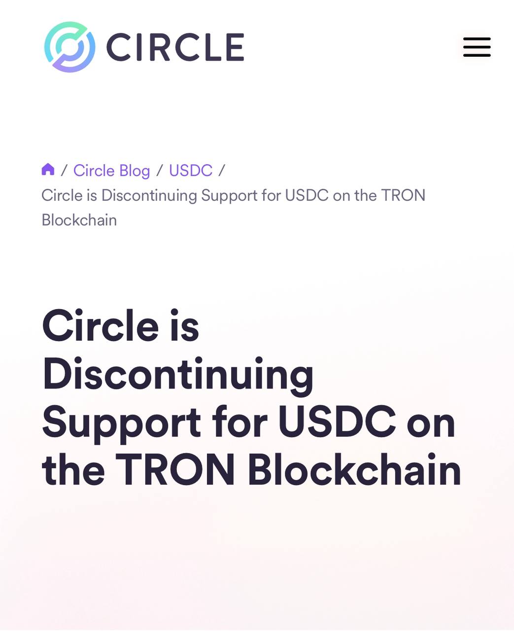 ⛔️ Circle прекращает поддержку USDC в блокчейне TRON