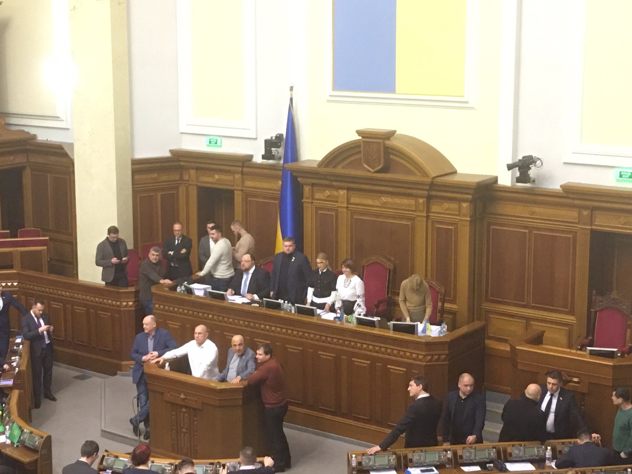 🔥Рада провалила голосування працювати всю ніч! За такий сценарій (працювати всю ніч) висловилося 222 депутати, а потрібно було на 4 голоси більше. Почалося знову блокування і штовханина. Пробують знову поставити на голосування.☝️