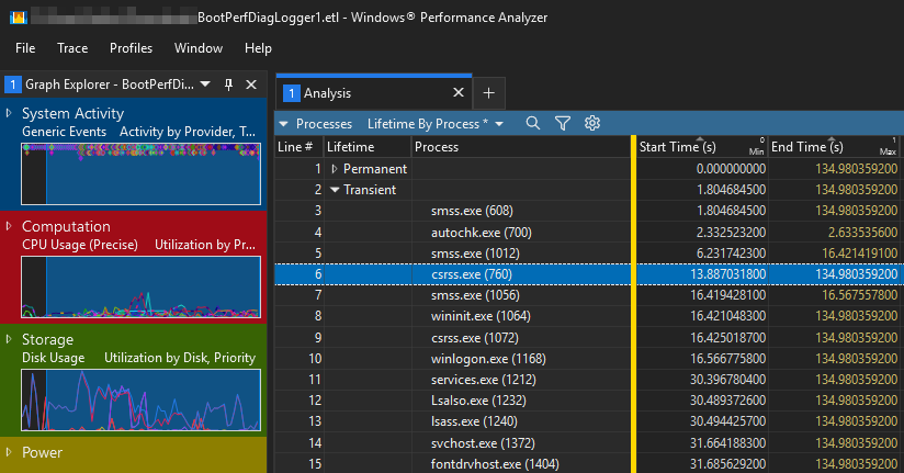 2. Отчёт утилит xbootmgr и xperf из состава Windows Performance Toolkit (WPT): следуйте этим инструкциям по созданию ETL и XML. Основы Windows Performance Analyzer (WPA) - здесь.