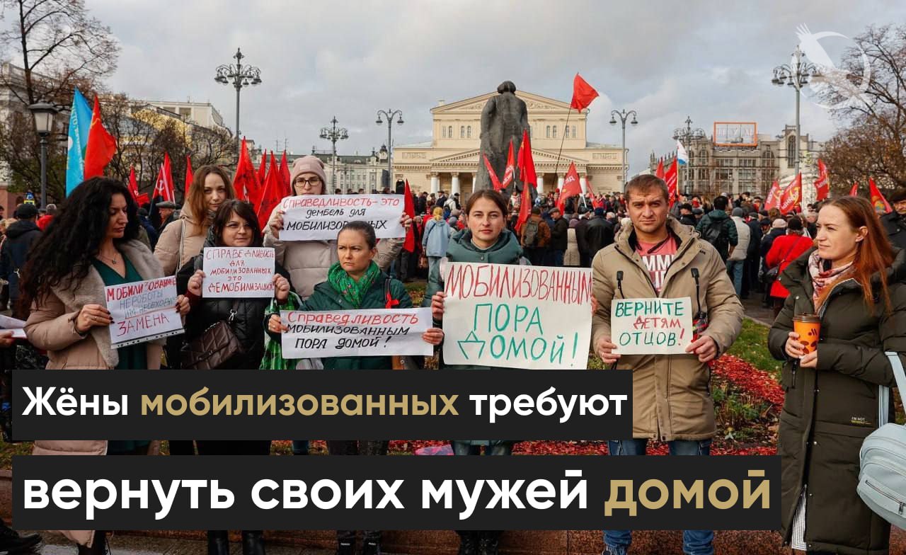 7 ноября в Москве жёны мобилизованных пришли на митинг КПРФ в честь 106 годовщины большевистского переворота. К женщинам подошла полиция и Зюганов, пообещавший рассмотреть их обращение. Задерживать пикетчиц не стали.