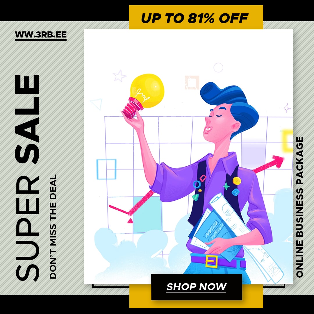 حقيبة رواد الاعمال عبر الانترنت. من خلال هذه الحقيبة اذا كان مشروعك شخصي او صغير تستطيع اطلاق مشروعك مباشرتاً عبر الانترنت بكل سهولة عبر أدوات وتخفيضات حصرية لدى الوكيل العربي لتطوير علامتك التجارية عبر الانترنت بتخفيضات حقيقية تستطيع اكتشافها بنفسك. تأتي هذه الحقيبة الابتدائية بالاشتراكات التالية: