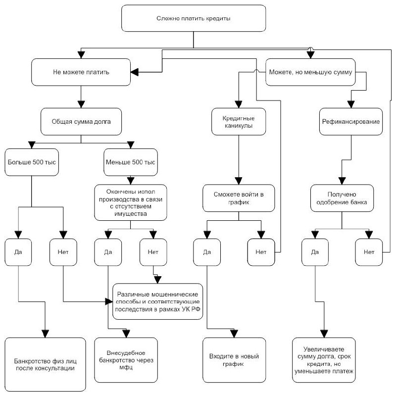 Простая схема, которая позволит вам выявить потребность или отсутствие потребности в процедуре банкротства.