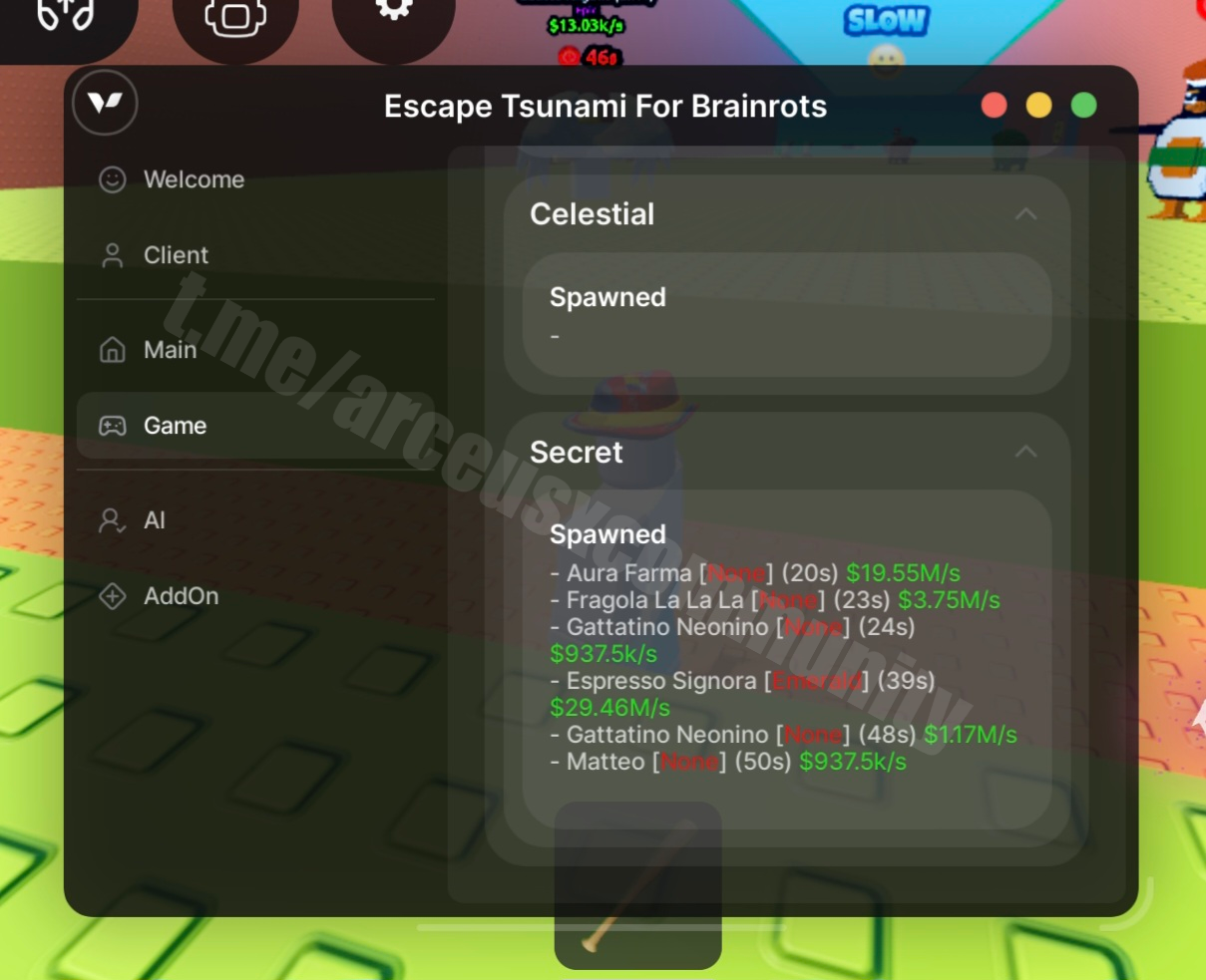🇷🇺: Скрипт на игру "Escape Tsunami For Brainrots", функции скрипта:ㅤ
