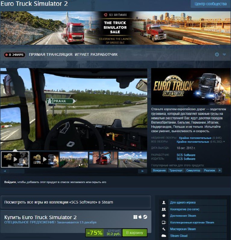 🔥Розыгрыш на одну копию Euro Truck Simulator 2 в steam 🔥