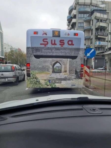 Прямым и грубым оскорблением армян и эллинов явилась возмутительная платная реклама, которая ранее была размещена на автобусах Организации городского транспорта города Фессалоники (ΟΑΣΘ) и изображала исторический армянский город Шуши как... азербайджанский❗, обозначив его турецким названием Шуша!