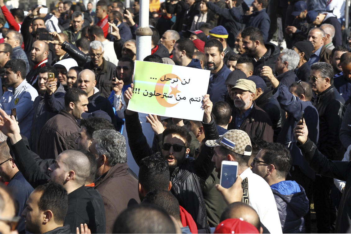 Люди недовольны тем, что 81-летний президент баллотируется пятый раз подряд, хотя на деле он фактически не управляет государством с 2013 года, когда пережил инсульт.