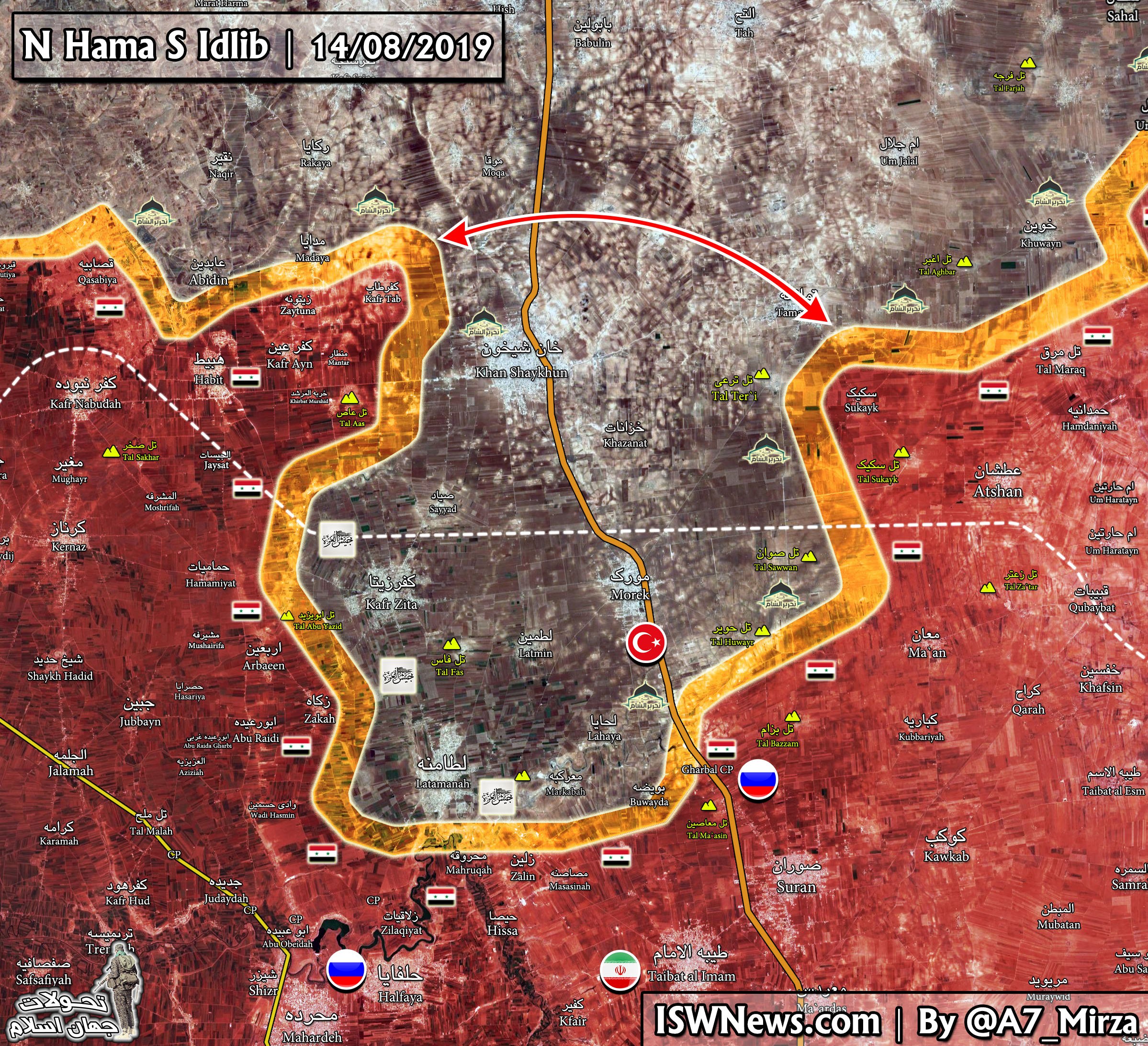 Северная часть провинции Хама, расположенная южнее, по сути становится "котлом" для боевиков. Им надо либо окапываться и держать эти территории до прибытия подкрепления (если оно вообще будет), или отступать, дабы защищать Хан-Шейхун и не оказаться в окружении.