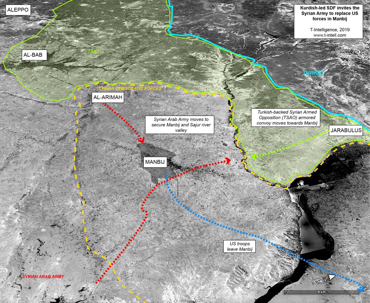 Кроме того, сирийская армия заняла десятки посёлков к северу от курдской твердыни Манбиджа, дабы остановить продвижение турецких войск и их союзников в Манбидж, и занять город первыми.