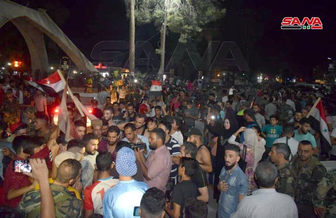 📹 А это местные жители и арабские бойцы SDF в городе Ракка, приветствуют восстановление контроля Дамаска над северо-восточной Сирией после сделки с курдами.