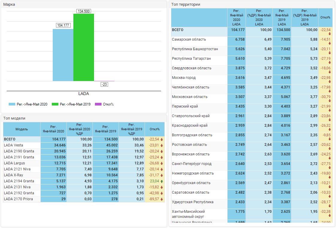 Обзор бренда LADA / РС / Регистрации новых / Январь-Май 2020 г. / Россия