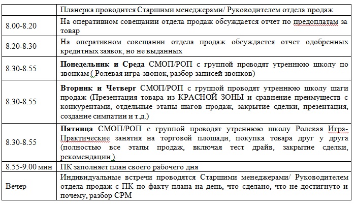 📝 Утренние школы. Да-да именно школы, мы не встречаемся утром, чтобы отчитаться по цифрам, РОП или старший по отделу коучит персонал, но без плана школ это разброд и шатание, сделайте план школы на каждый день, должна быть цель-задачи-действия на каждый день свои.