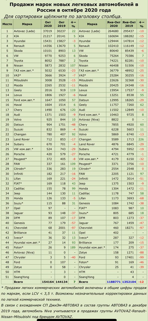 ❗ Статистика продаж автомобилей по данным AEB. Как всегда лидер Лада, за ним КИА , ну и естественно Хендай.