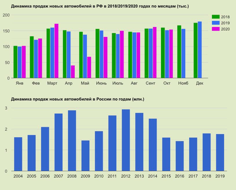 Продажи новых авто в прошлом месяце составили 140,9 тыс. единиц. Этот показатель на 9% выше, чем в октябре 2019 года. В премиум-сегменте они выросли немного меньше (+3,2% до 14,5 тыс. штук), отмечают эксперты аналитического агентства «АВТОСТАТ».