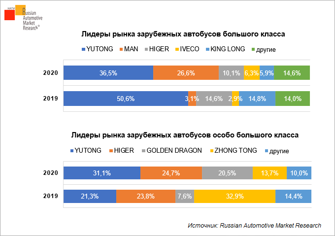 По данным Russian Automotive Market Research, продажи новых зарубежных автобусов за январь-ноябрь 2020 г. упали на 42,2% по сравнению с аналогичным периодом 2019 года, при том что общая динамика рынка изменилась не сильно (-4,8% от АППГ).