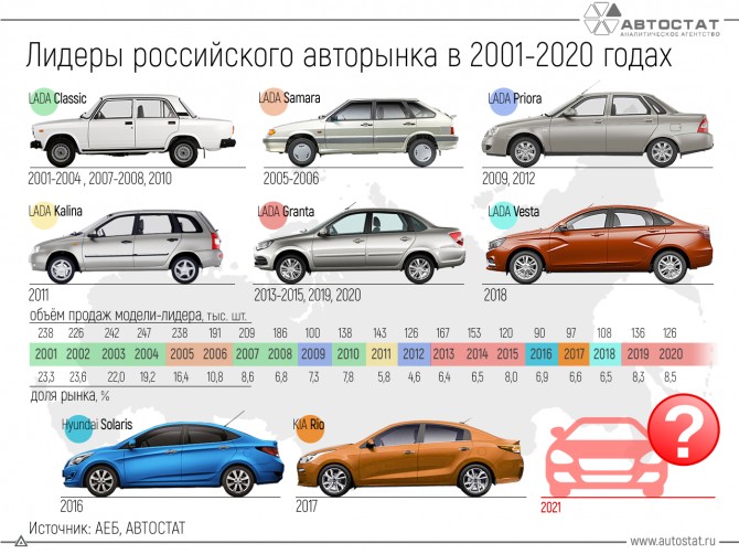 Вспоминаем лидеров российского рынка с 2001 года по данным Автостат.