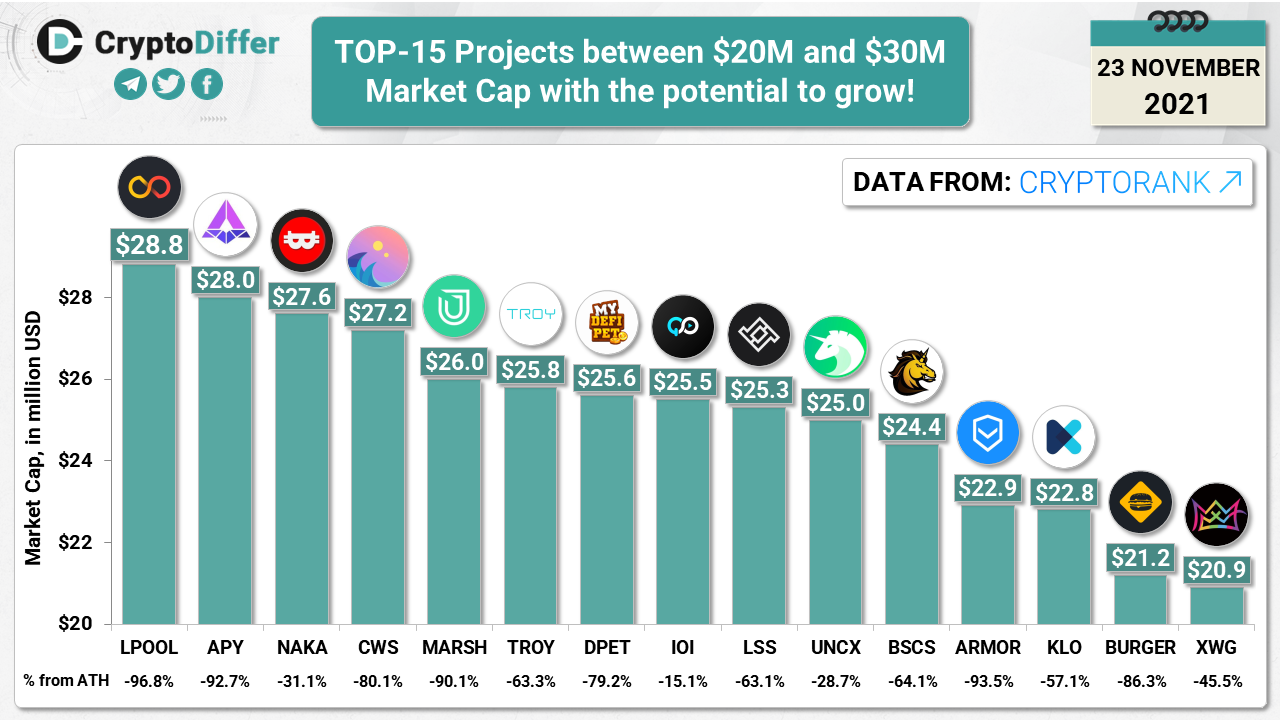 ββTOP-15 Projects between $20M and $30M Market Cap with the potential to grow!