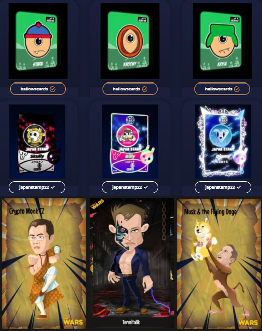 Паки с карточками, посвященными известным персонажам криптовалютной вселенной, некоторые из которых в ответе за пампы и дампы на рынке (привет Илону и DOGE😅):